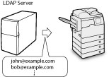 You can search for a destination from the directory listings on the network using LDAP (Lightweight Directory Access Protocol) servers. You can then specify the address as a destination, or register it in the address book.