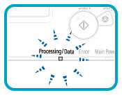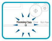 The Processing/Data indicator flashes or maintains a steady green light even when the machine enters the Sleep mode.