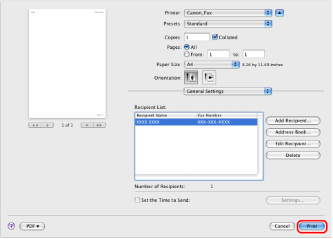 To change a recipient name or fax number that has already been added, select the recipient from [Recipient List] and click [Edit Recipient].