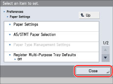 Specify the setting → press [Close].