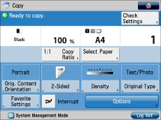 If [Department ID Management] or [Limit Functions] for [Department ID Management] is set to 'On', the startup screen may differ from the screen set to be displayed as default at startup.