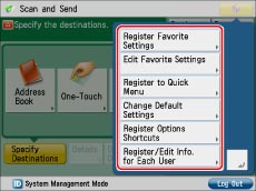 Registering/Editing/Deleting Favorite Settings Buttons for Scan and Send