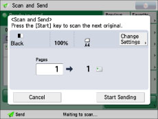 If the following screen is displayed, after the last batch of originals is scanned, press [Start Sending].