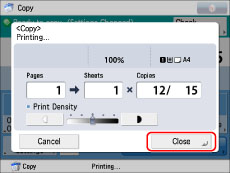 Press [Close] on the pop-up screen that appears while the machine is printing.
