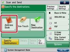 You can perform this procedure using the touch panel display or the Remote UI. Using the Remote UI, you can register a destination with ease.