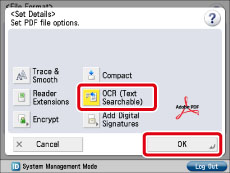 Press [OCR (Text Searchable)] → [OK] → [OK].
