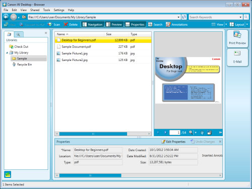 imageRUNNER ADVANCE output icon is registered to the iW Desktop output bar.