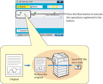 These applications enable you to register a combination of frequently used machine functions as a "flow" button. By pressing this button, you can repeatedly reuse the same combination of functions with ease.