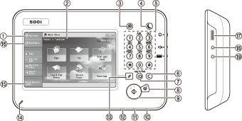 The control panel includes the keys, touch panel display, and indicators required for operating the machine. (See "Control Panel Parts and Functions.")