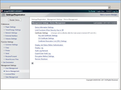 Click [Settings/Registration] → [Device Management] for <Management Settings>.