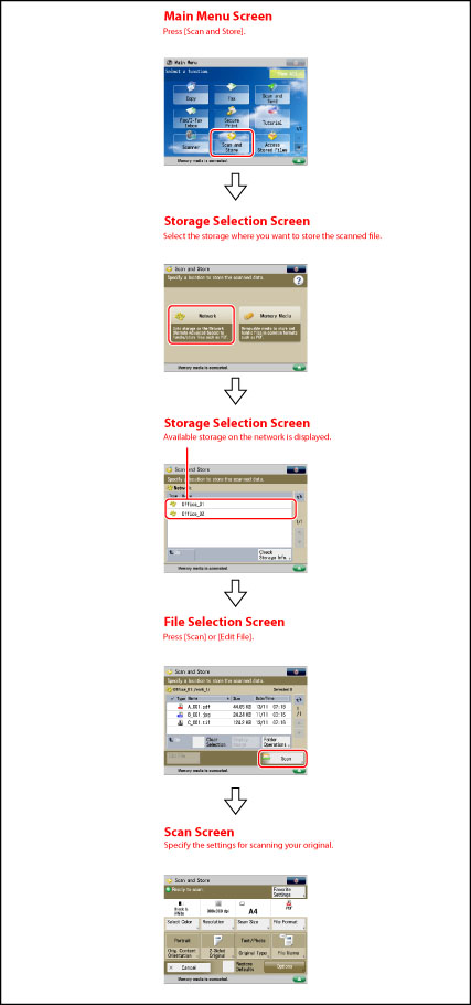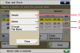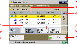 For instructions on arranging folders, checking detailed information for the file, and editing/deleting files, see "Access Stored Files."