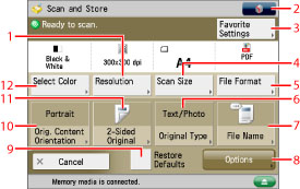 Press to cancel all settings. (The machine restores the default settings for Scan and Store.) |