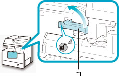 Turn the toner cartridge lock lever counterclockwise so that the arrow marks on the lever and its axis face each other.