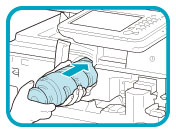 Support the toner cartridge with one hand from underneath while pushing it into the machine with the other hand.