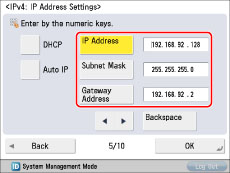 By setting [Auto IP] to 'On', you can have the machine automatically search the network (LAN) being used for usable IP addresses and assign one to the machine. This function bypasses the DHCP server to automatically assign IP addresses, however the machine cannot communicate over the router when using this function.