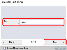 The unit name can be changed after finishing the Setup Guide. For more information, see "Fax Line Settings."