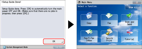 Once the Setup Guide has been completed, it will not start up again when turning ON the machine.
