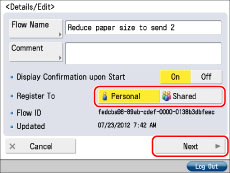 By pressing [Shared] and cancelling the setting, the flow is registered only as a Personal flow.