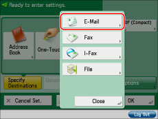 Press [E-Mail Address] → enter the e-mail address → press [OK].