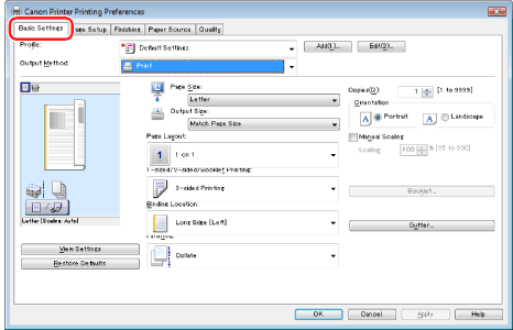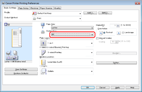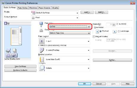 The document is scaled automatically according to the settings made in [Page Size] and [Output Size].