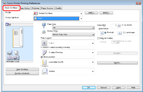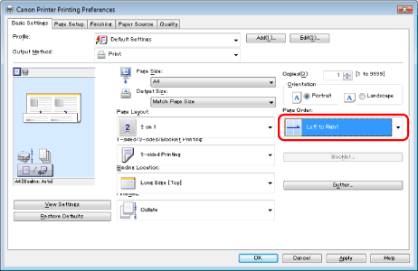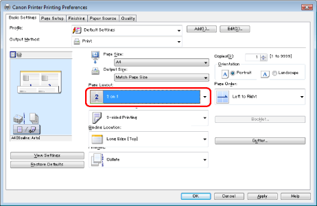If you cannot select the options for [Page Layout], display the [Device Settings] tab, and then select [Auto] or [Enabled] from [Spooling at Host]. For instructions on how to display the [Device Settings] tab, see "Setting the Printer Options."