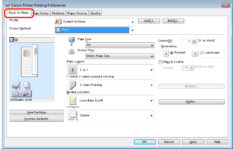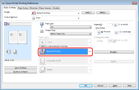 You cannot set [Finishing] options in the [Basic Settings]/[Finishing] tab when performing Booklet Printing.