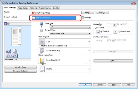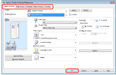 For details about the Canon PageComposer settings, see the Canon PageComposer online help.