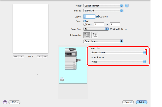 When you want to print on a specific type of paper, specify the paper source containing the paper, or the paper type.