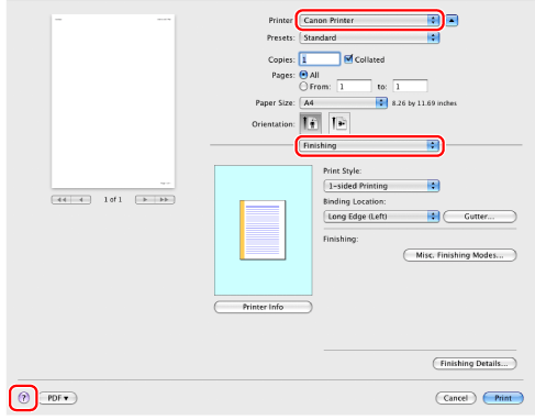 Select your printer from [Printer] → select a preferences pane → click [