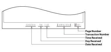 You can set whether the machine prints the date, day, and time received, transaction number, and page number at the bottom of received documents.