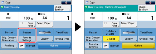 If you register [2-Sided] + [2 on 1] in FavoriteSettings, the screen is displayed as shown below.