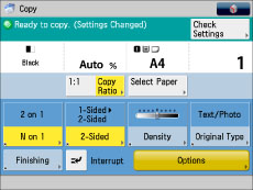 Settings can be recalled without displaying a confirmation screen from the Copy Basic Features screen.