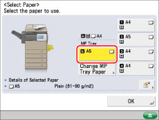 If paper is being fed from the multi-purpose tray for the current job, you can select the paper for the next job from [Change MP Tray Paper]. (See "Reserving a Copy Job Using the Multi-Purpose Tray.")