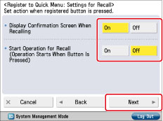 You can select whether to include the following password when registering settings in a Personal button or Shared button in the Quick Menu: