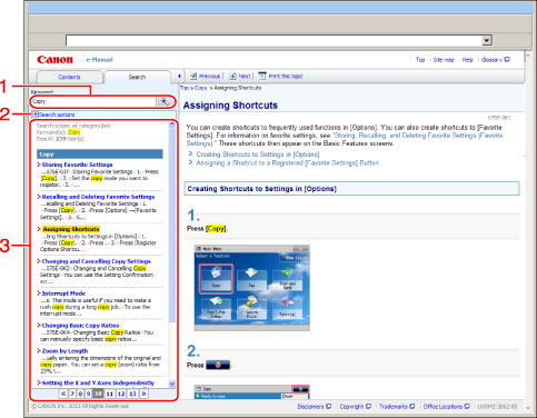 The search results for a keyword are displayed. If the search results are more than 10 results, you can see the other results by clicking [« Prev], [Next »] or the number which is located below the result. |