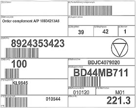An example of an Odette label macro with data, bar codes, and a security symbol added.