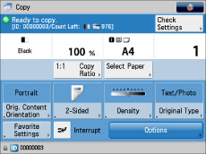 If you are managing the machine using control cards and there is a function with its limit set to 'Off' in [Limit Functions], the Main Menu screen appears when the machine starts. In this case, perform the procedure from step 1 without inserting a control card.