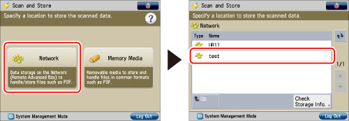 Press [Network] → select the desired storage location.