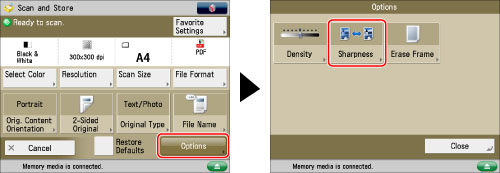 You can adjust the sharpness to scan text and lines with a sharper contrast. You can also reduce the sharpness for the half-tone dots of printed photos, etc. to scan with a softer image.