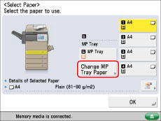 You can register paper types that are not displayed on the detailed settings list in <Change Multi-Purpose Tray Paper: Paper Type>. For more information on storing the paper type, see "Registering/Editing Custom Paper Types."