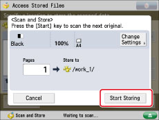 If the following screen is displayed, after the last batch of originals is scanned, press [Start Storing].