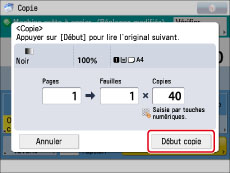 Pour plus d'informations sur le début de la copie de l'original suivant pendant l'impression de l'original précédent, voir "Réservation de copies".