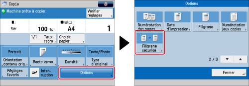 ([Filigrane sécurisé] est défini sur [Portrait]) |