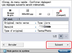 Le nombre de boutons personnels pouvant être enregistrés peut être inférieur au nombre maximum, selon l'utilisation de la mémoire de la fonction Menu rapide.