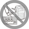 Si la partie branchement du cordon d'alimentation est soumise à une tension trop importante, cela risque d'endommager le cordon ou les fils situés à l'intérieur de la machine peuvent se déconnecter et provoquer ainsi un incendie. Eviter les situations suivantes :