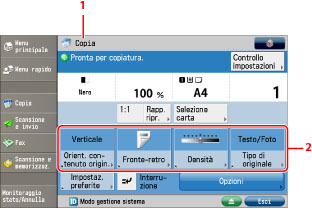 in alto a destra nella schermata [Scansione e invio] Funzioni di base, [Fax] schermata Funzioni di base e [Mailbox fax/I-Fax] schermata Invio.Premere [Menu principale] per tornare alla schermata Menu principale.