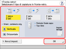 Impostare i modi di copiatura desiderati → premere [Controllo impostazioni].