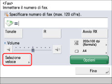 È possibile specificare il numero di telefono o di fax della destinazione selezionando un pulsante di selezione veloce. Per maggiori informazioni sulla cancellazione dei pulsanti di selezione veloce, vedere "Specifica delle destinazioni utilizzando i pulsanti di selezione veloce".