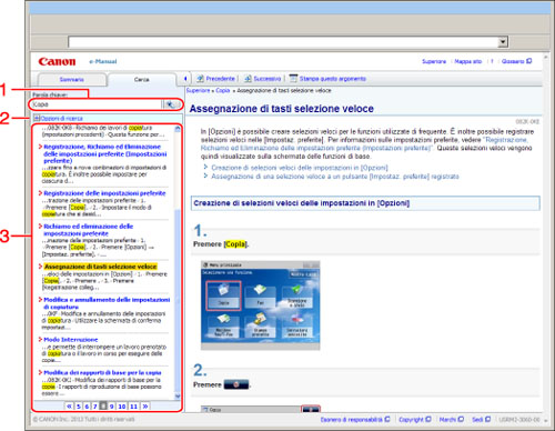 Vengono visualizzati i risultati della ricerca corrispondenti a una parola chiave. Se sono più di 10, è possibile visualizzare gli altri risultati facendo clic su [« Indietro], [Avanti »] o sul numero sotto il risultato. |