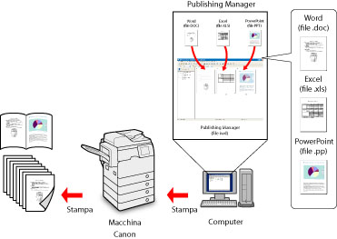 Con Publishing Manager, è possibile creare documenti in modo efficiente sfruttando al massimo le funzionalità di una macchina Canon.